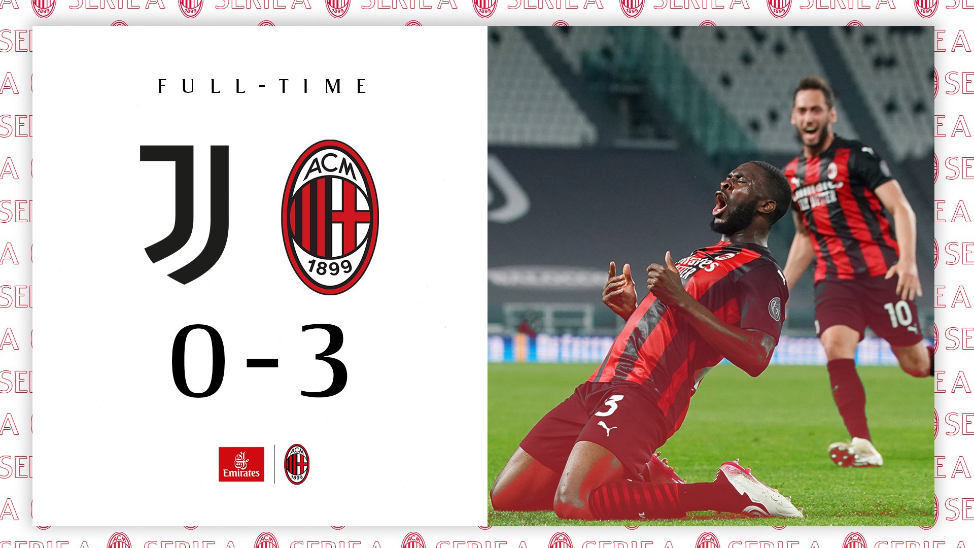Juve milan 0 3. Brahim Diaz et Ante Rebic ont marqué deux petits bijoux tandis que Fikayo Tomori a tué le match dun coup de tête. Del 09 maggio 2021 alle 2244. E terminata la partita tra Juventus e Milan partita della 35ª giornata di Serie A stagione 2020.