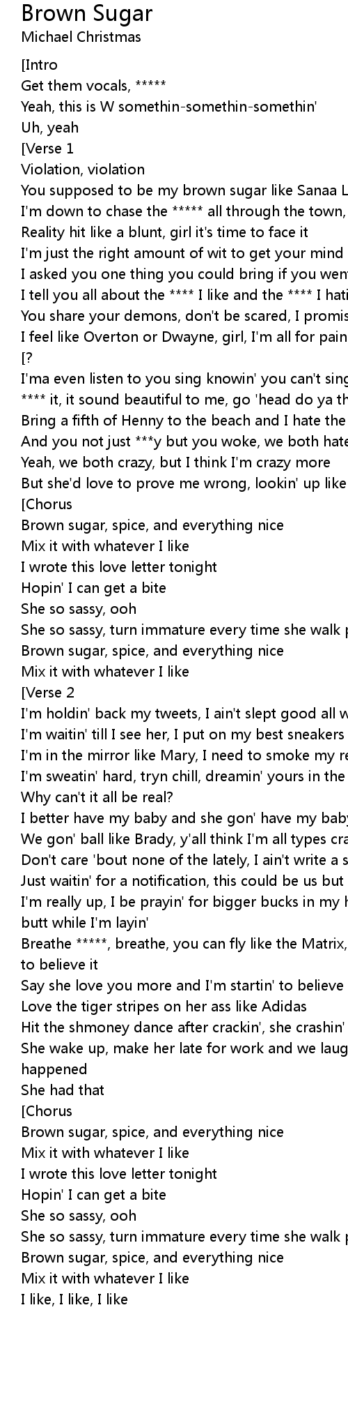 Brown Sugar just like a black girl should I bet your mama was a. G Yeah yeah yeah oooo C. Deutsch English Español Français Hungarian Italiano Nederlands Polski Português Brasil Română Svenska Türkçe Ελληνικά Български Русский Српски العربية فارسی 日本語 한국어.